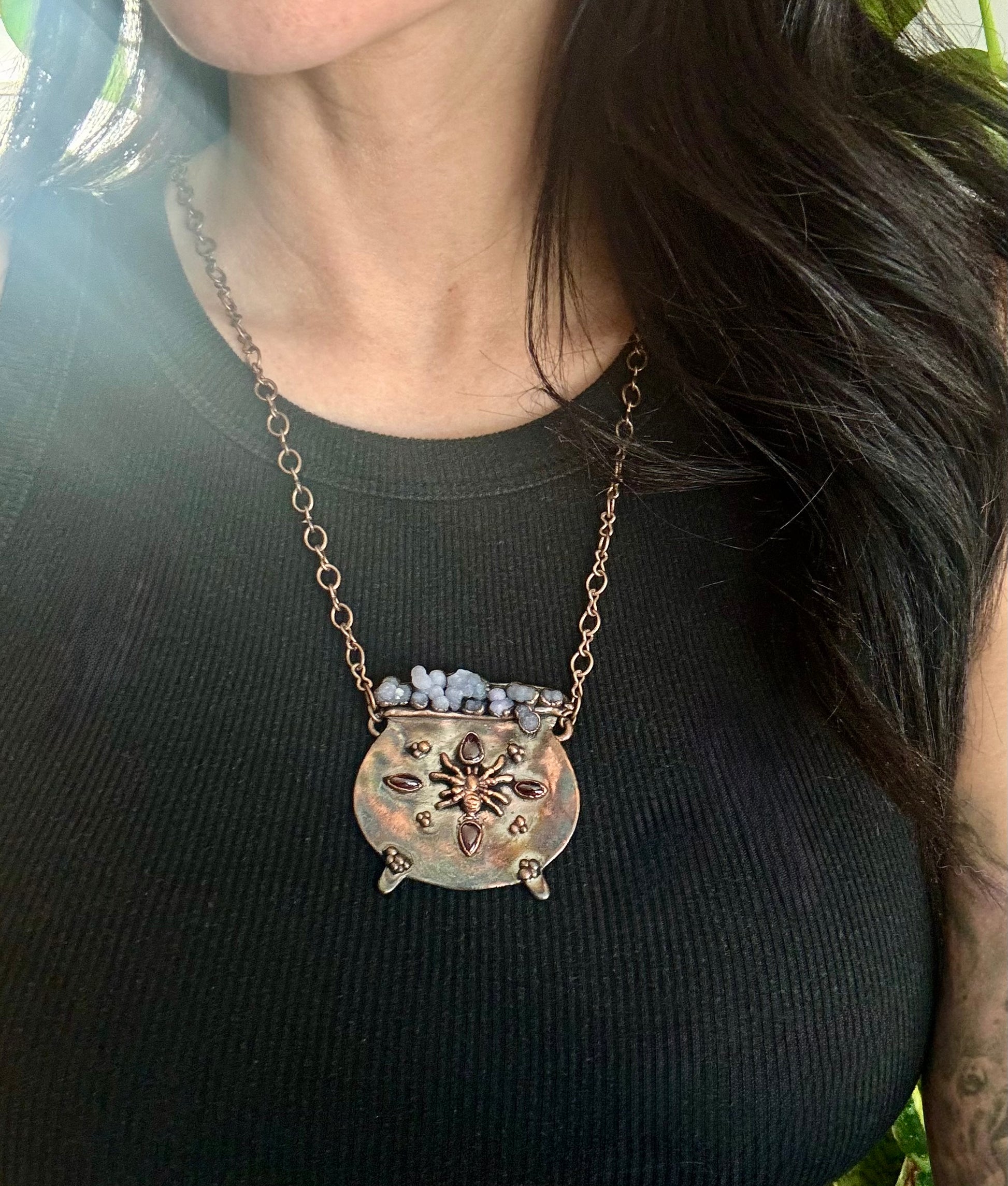 Witches cauldron Electroformed copper jewelry crystal pendant