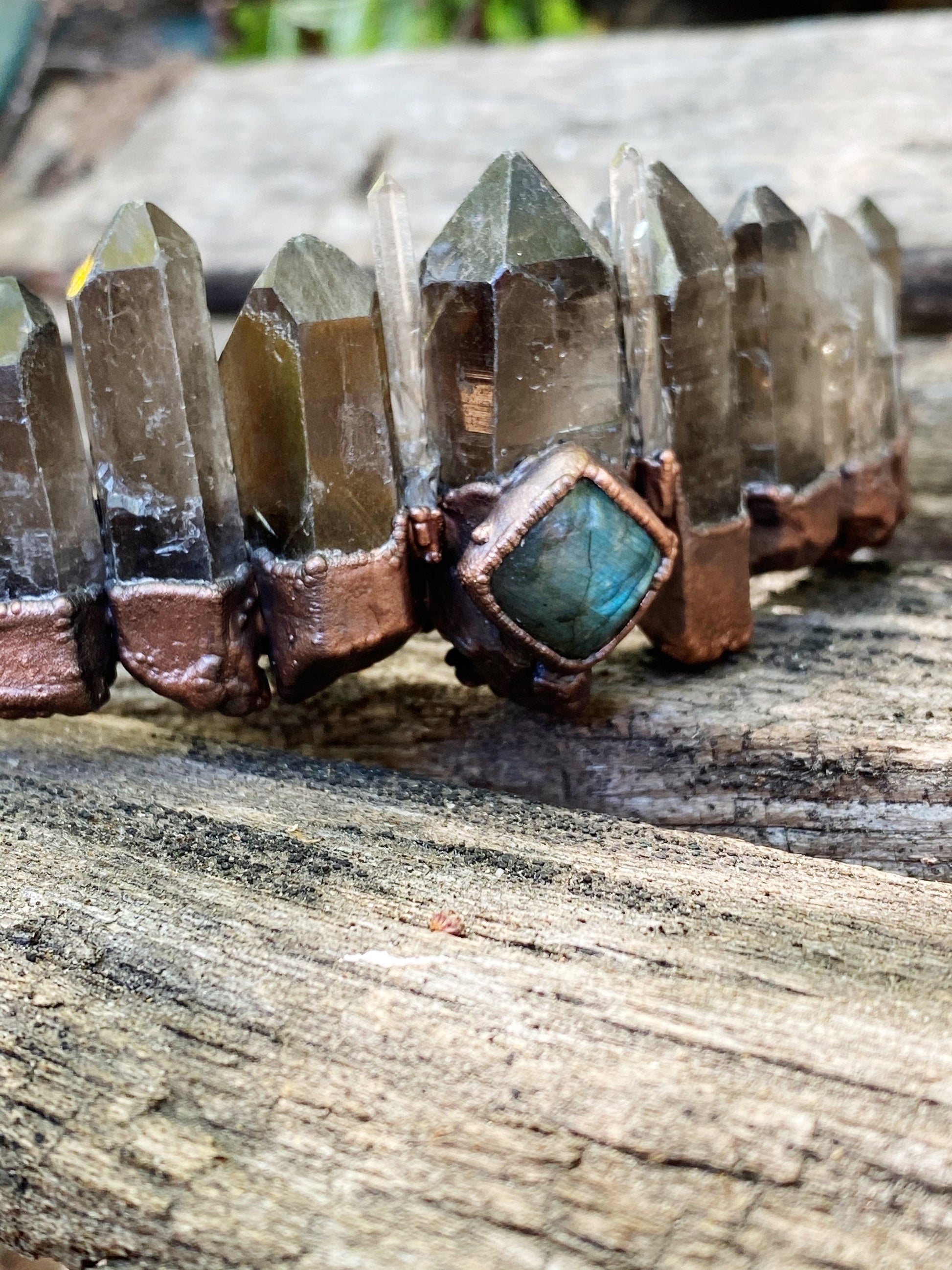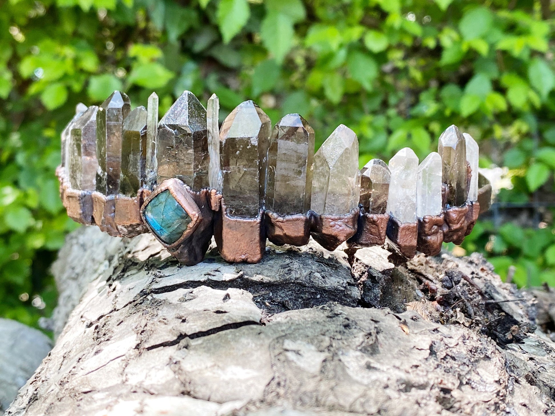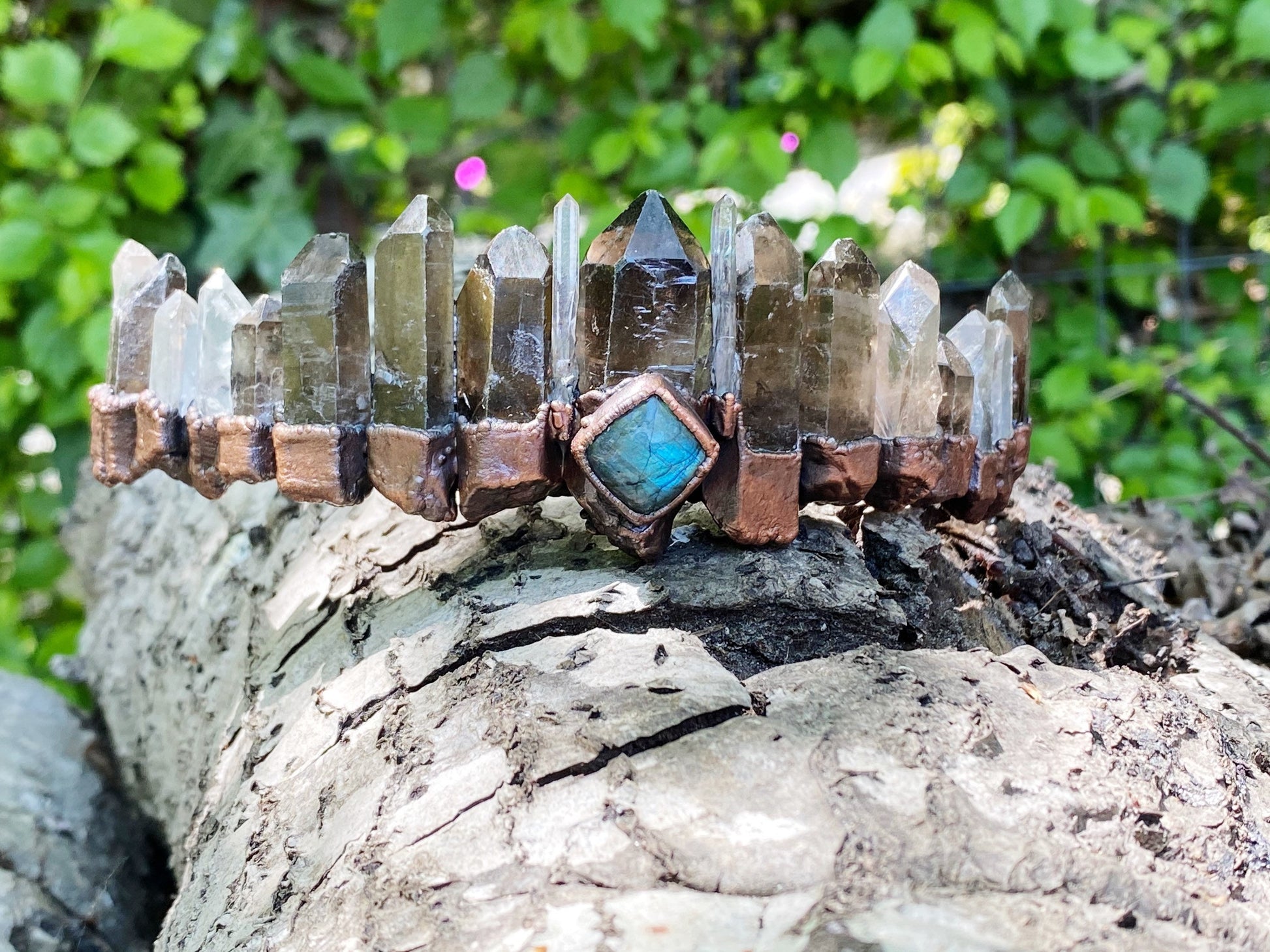 Crystal crown tiara Smokey and clear Quartz and labradorite wedding headdress bohemian witch head piece