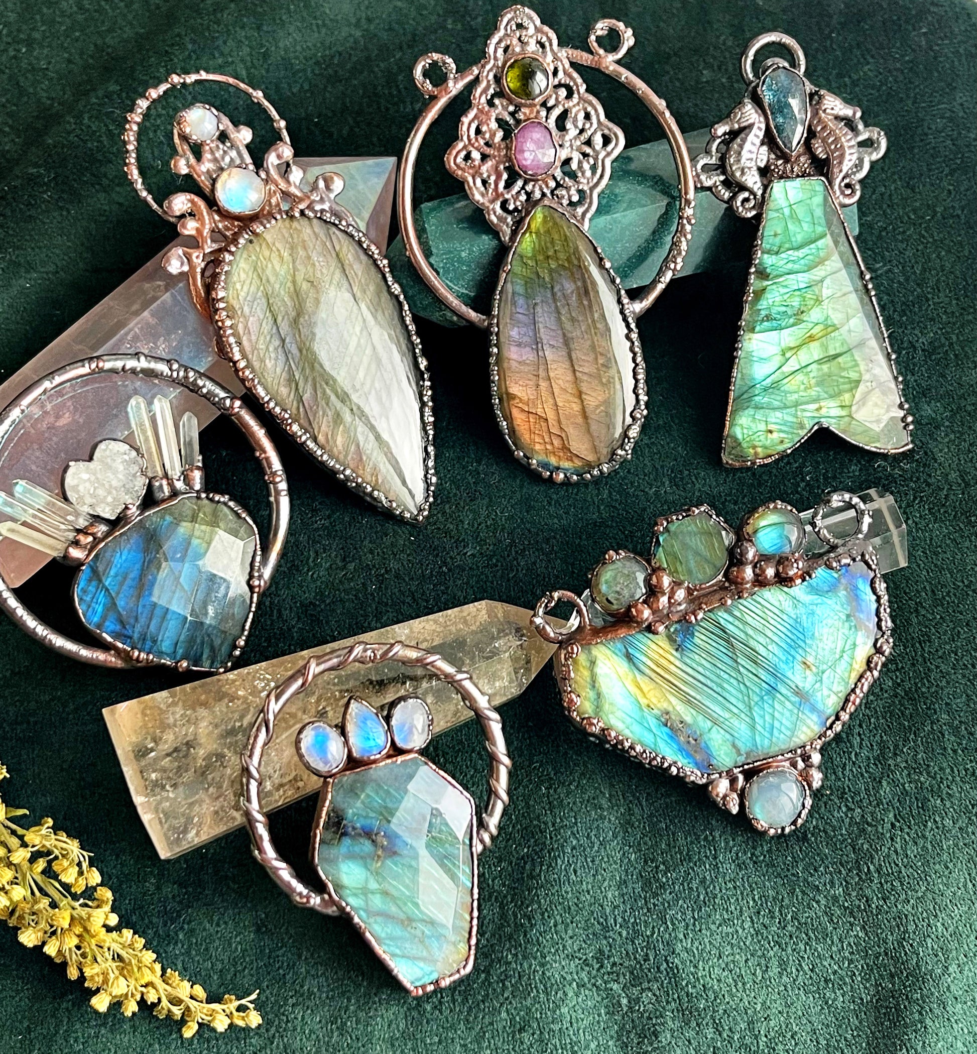 This collection showcases the Orphic colors of labradorite.