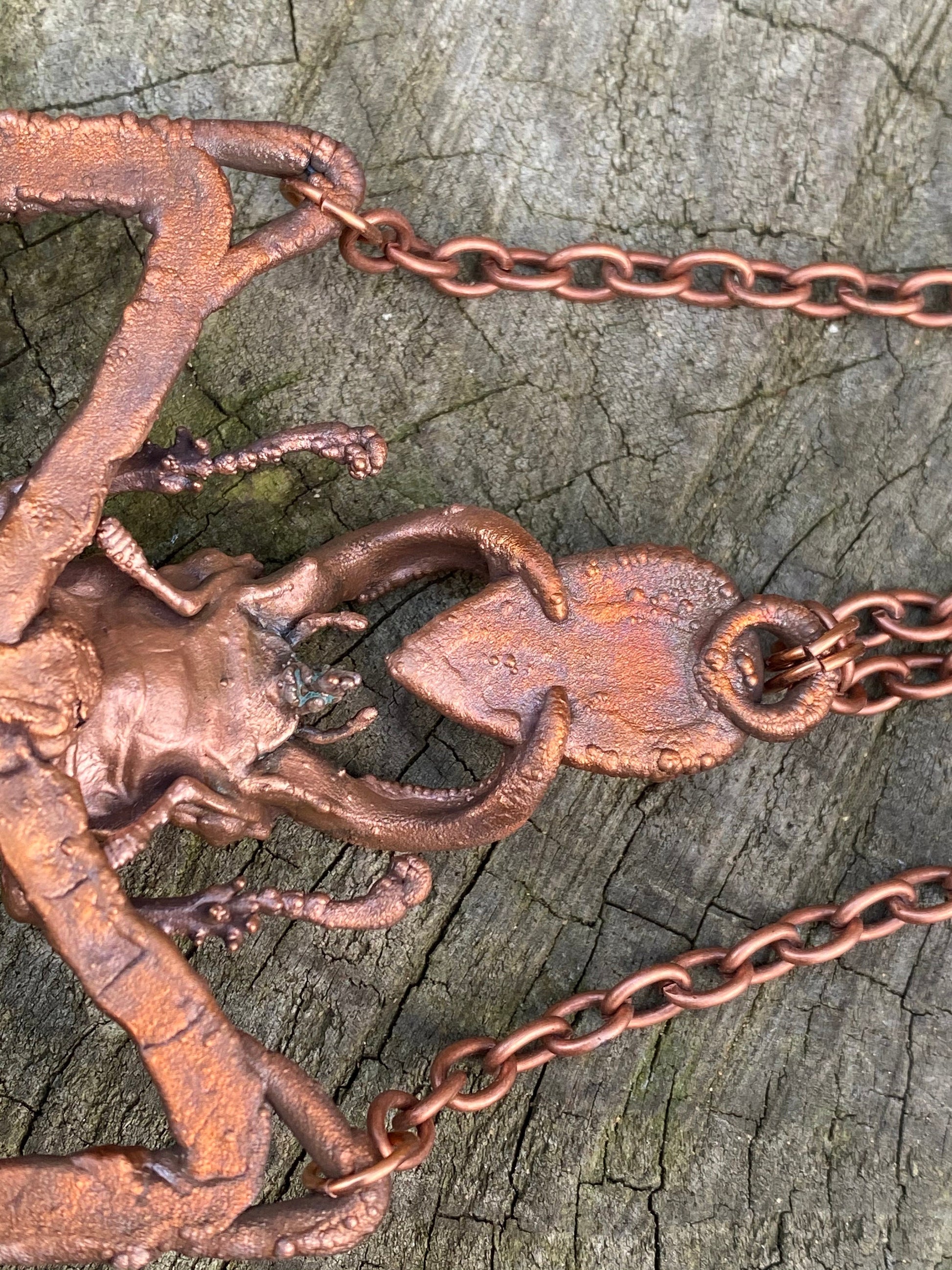 This is a real stag beetle fully encased in pure copper. Forever preserved as beautiful art. This is a ONE OF A KIND piece.